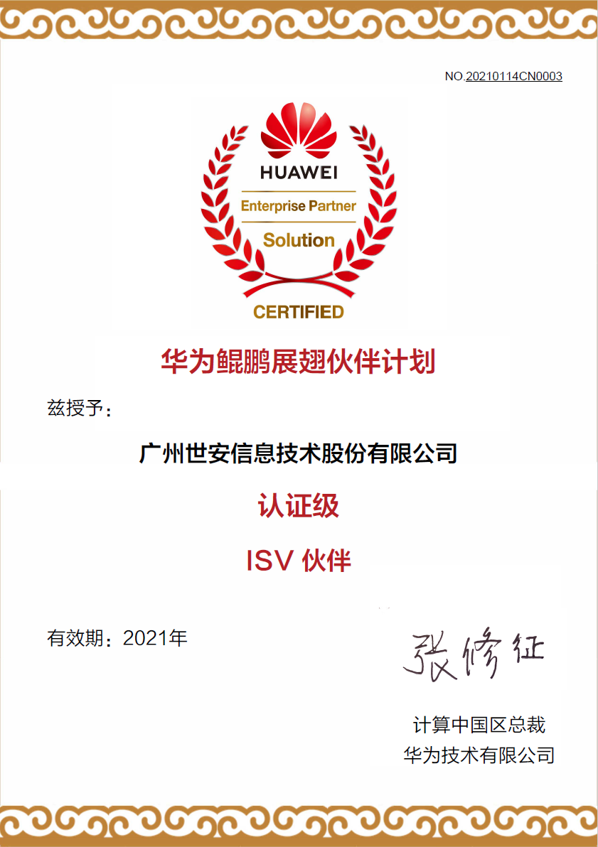 近日,世安正式加入華為鯤鵬展翅伙伴計劃,獲得華為“認(rèn)證級ISV伙伴”身份。此外,由公司自主研發(fā)的終端安全管理系統(tǒng)V5.2也已通過華為測試,獲得“華為鯤鵬兼容性技術(shù)認(rèn)證”證書。